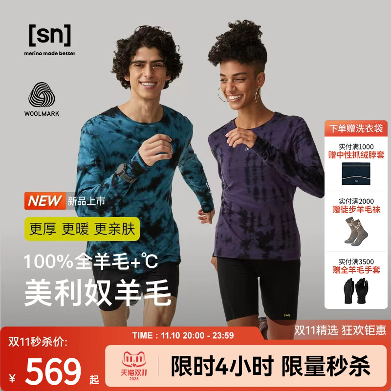 【新品】SN美利奴羊毛扎染长袖女户外徒步长袖t恤100%全羊毛系列