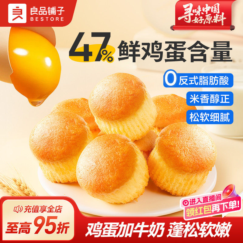 良品铺子戚风小米鸡蛋糕健康营养早餐面包糕点心休闲食品整箱400g