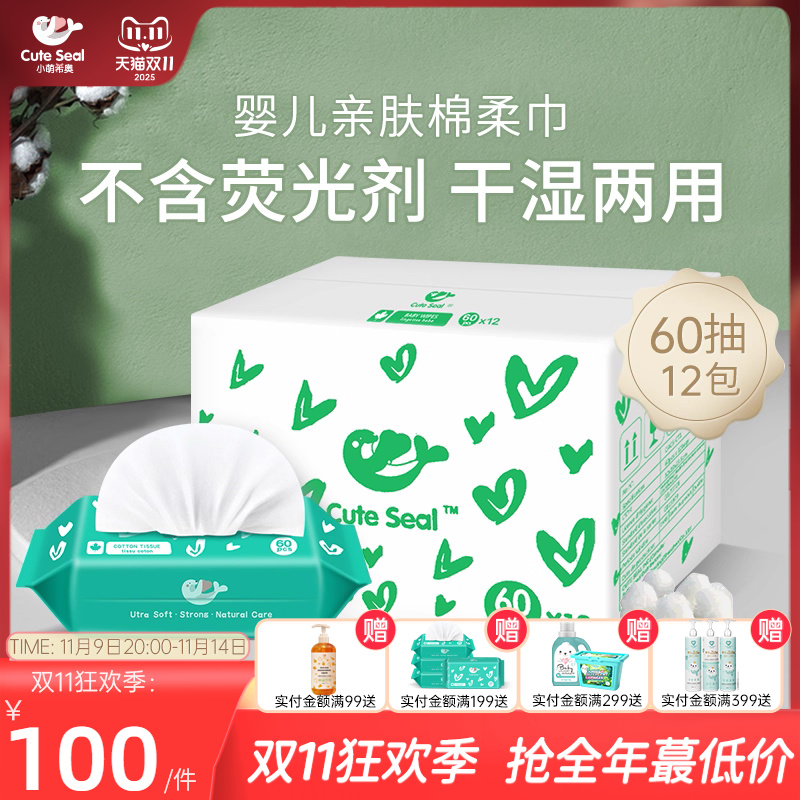 小萌希奥 婴儿棉柔巾手口宝宝棉柔巾婴儿干湿洗脸巾60*12包