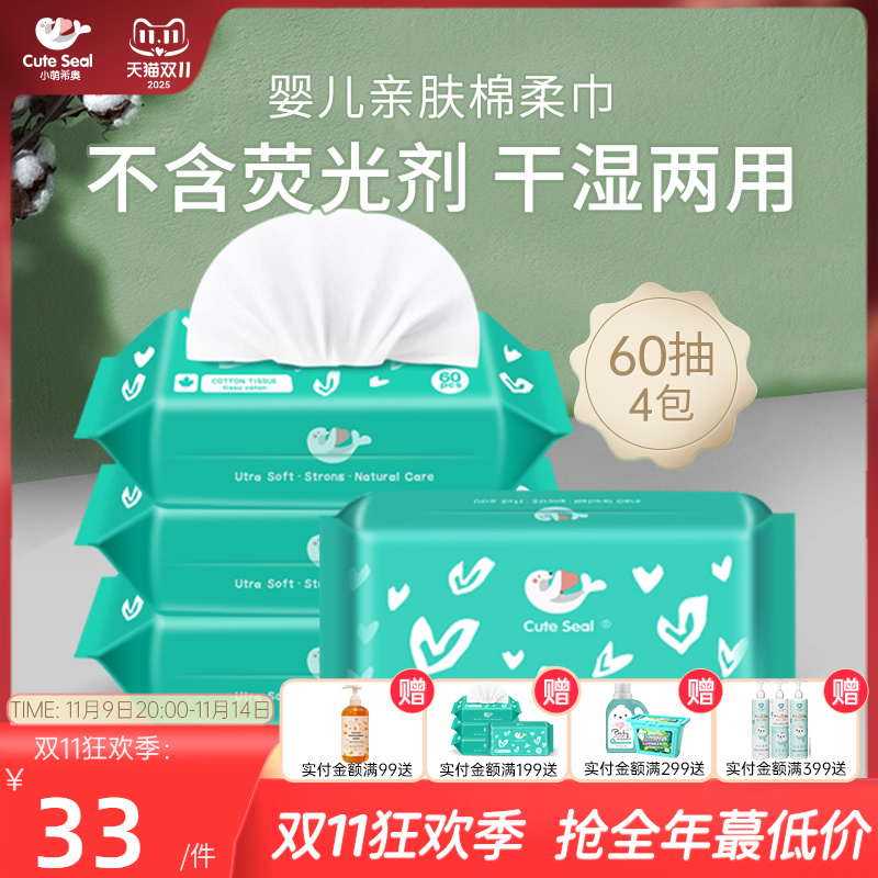 小萌希奥棉柔巾婴儿干湿两用多功能婴儿新生抽巾手口60抽*4包