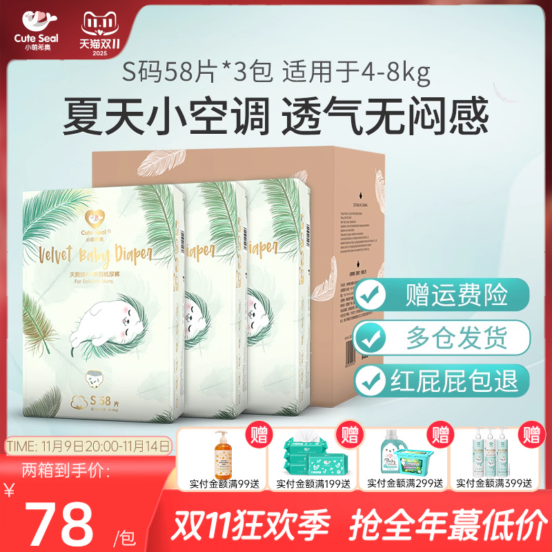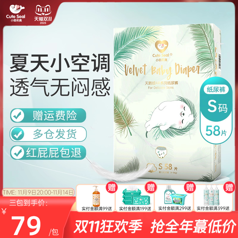 小萌希奥天鹅绒Air婴儿尿不湿S码58片小码纸尿裤超薄透气男女尿裤