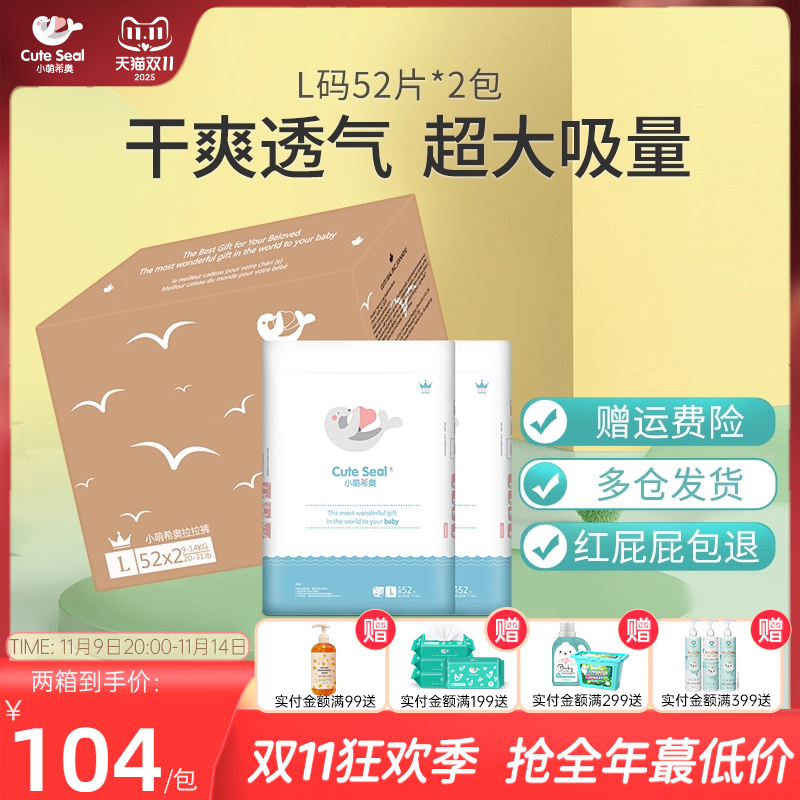 小萌希奥蝶翼灵动升级版婴儿拉拉裤L码104片箱装非纸尿裤超薄透气