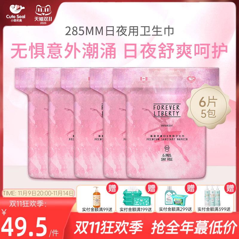 cuteseal小萌希奥卫生巾女纯棉日用夜用装两用姨妈巾超薄绵柔5包