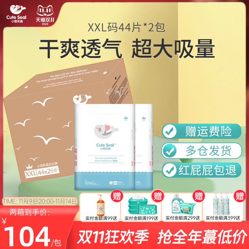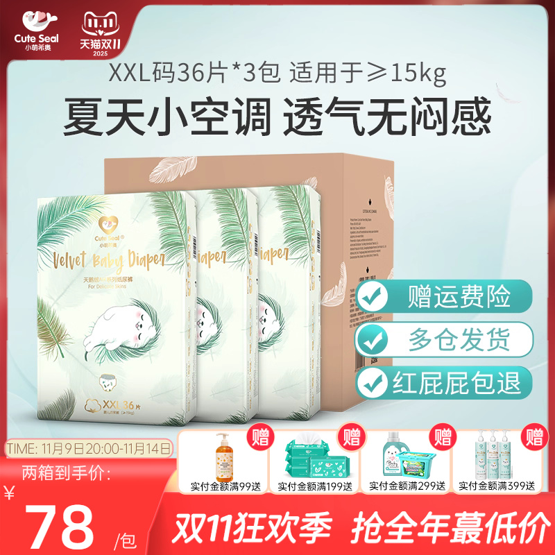 小萌希奥婴儿纸尿裤超大码XXL码天鹅绒Air尿不湿超薄透气108片箱