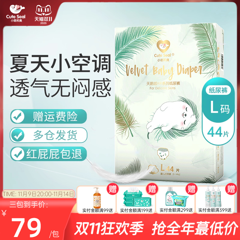 小萌希奥天鹅绒AIR纸尿裤L码44片夏季超薄透气轻柔亲肤婴儿尿不湿