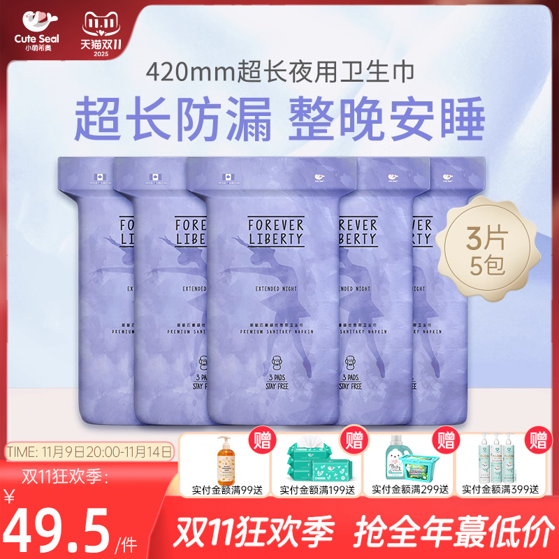 cuteseal小萌希奥超长夜用卫生巾 420mm熟睡干爽超大女卫生棉5包