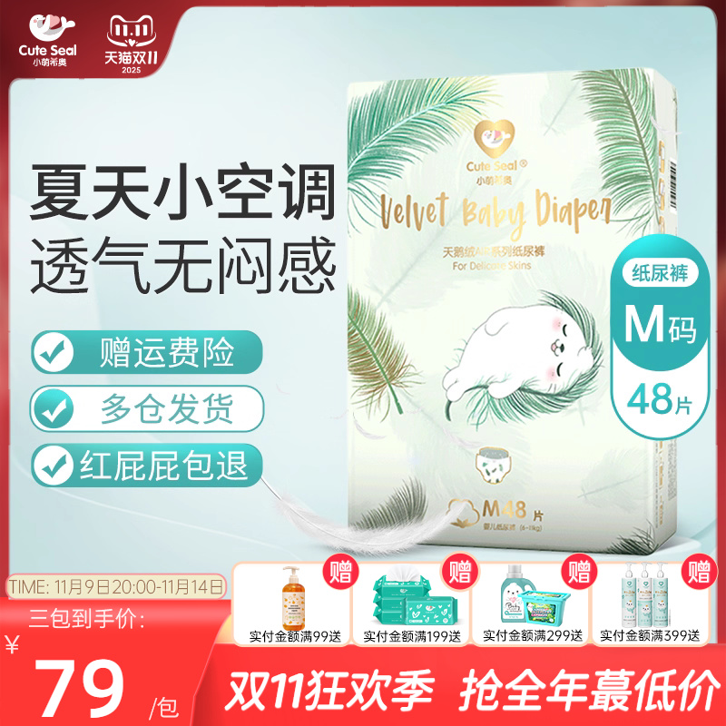 小萌希奥天鹅绒AIR 婴儿纸尿裤M码48片尿不湿超薄透气轻柔男女宝