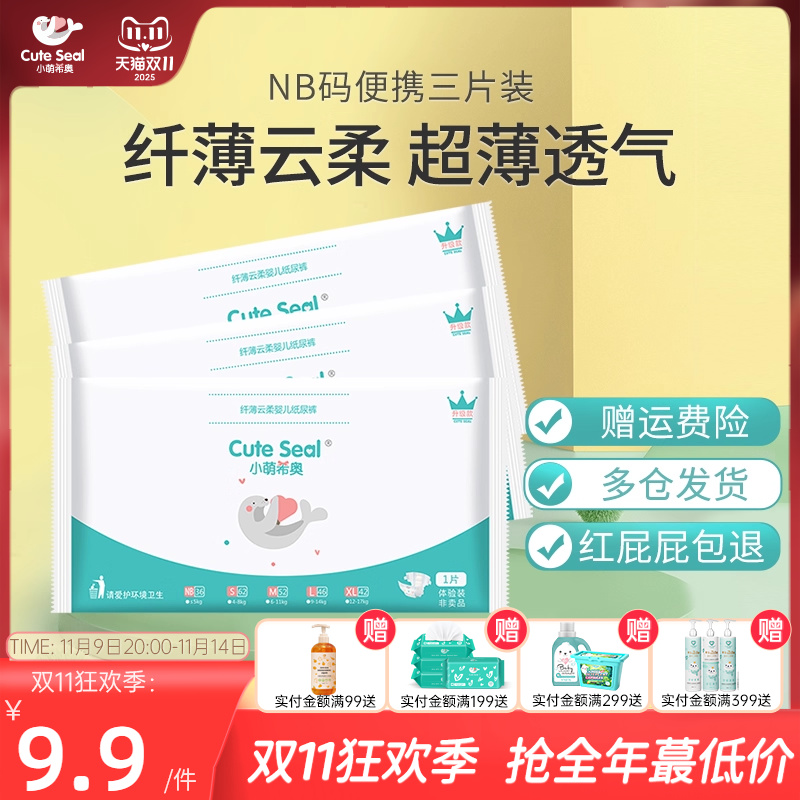 cuteseal小萌希奥尿不湿婴儿拉拉裤男女宝宝试用装透气XL*3尿布湿