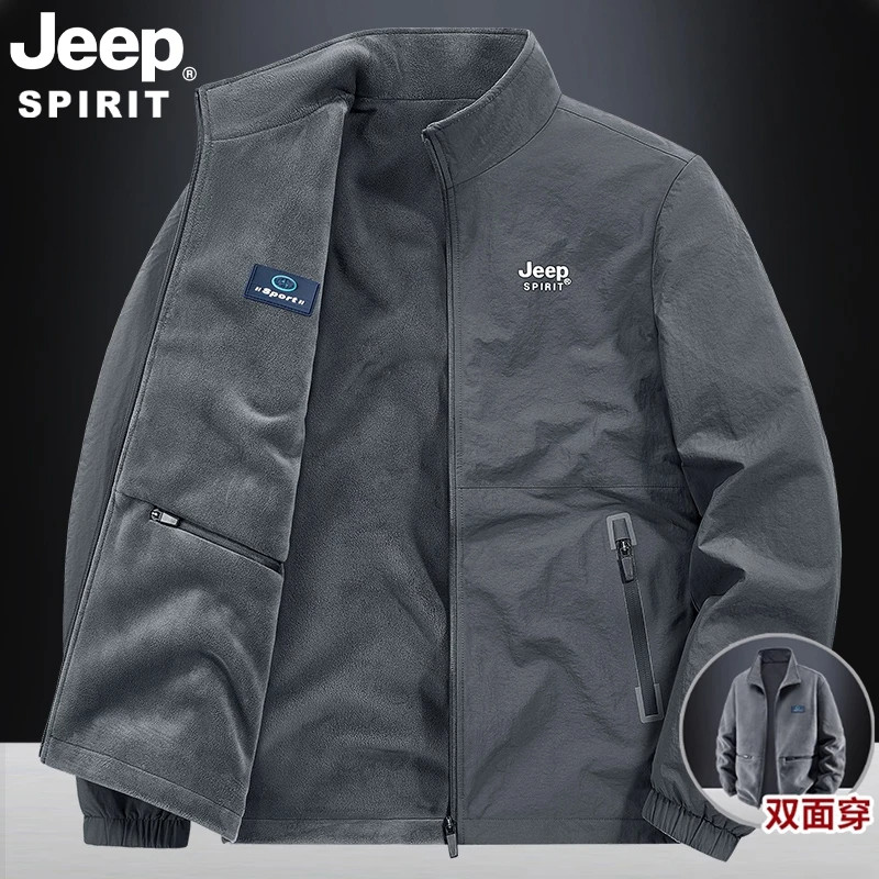 JEEP夹克男2025新款春秋双面穿立领加肥加大码秋冬装休闲男士外套