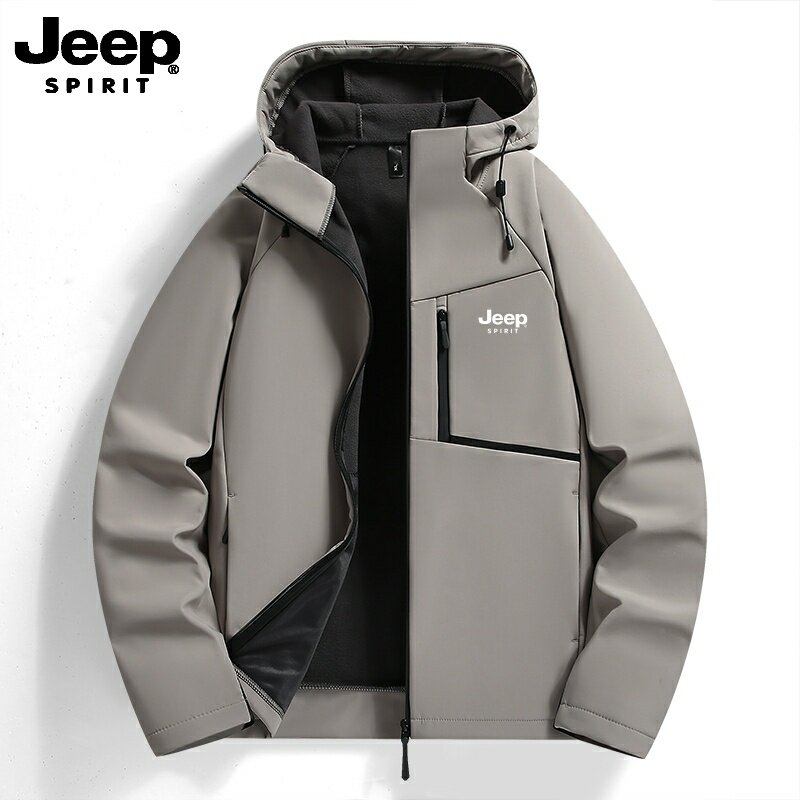 Jeep吉普官方夹克男士秋冬2025新款防风抓绒保暖冲锋衣服连帽外套
