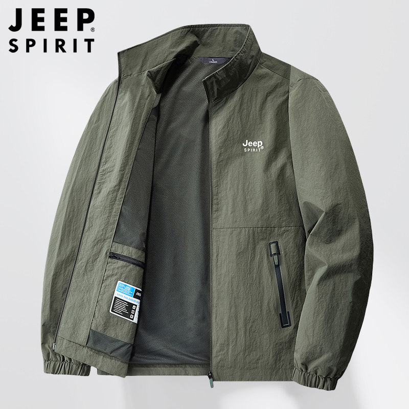 吉普JEEP夹克男士春秋季薄款户外防水休闲运动立领工装中青年外套