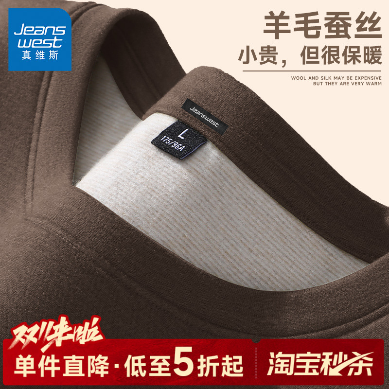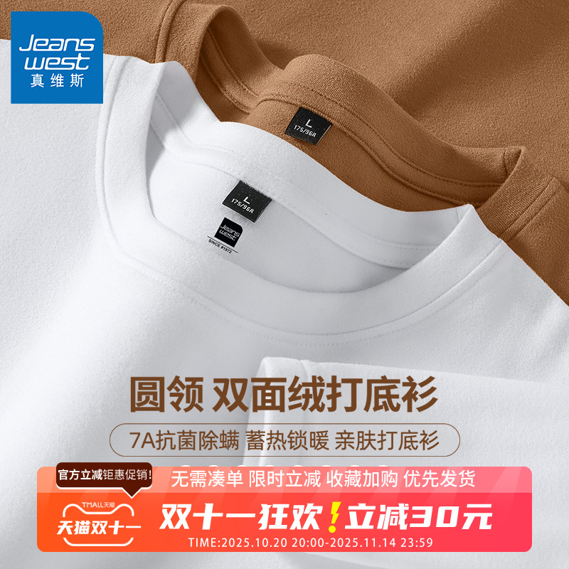 GV真维斯打底衫男内搭冬季加绒加厚保暖内衣男士羊毛绒长袖秋衣A