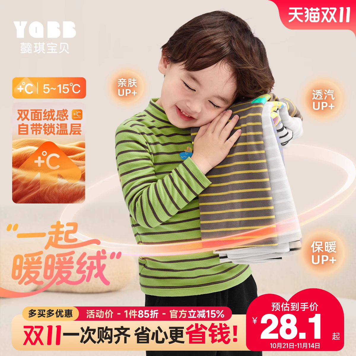 秋冬装德绒打底衫保暖儿童装宝宝半高领男童女童加绒加厚长袖T恤