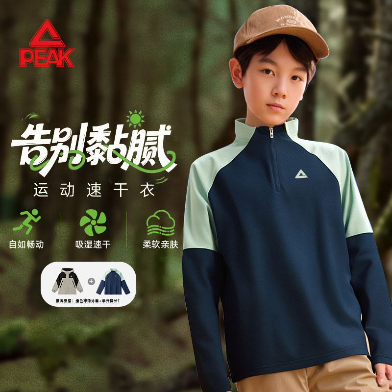匹克童装儿童长袖t恤男童青少年速干运动训练服加绒加厚打底衫冬