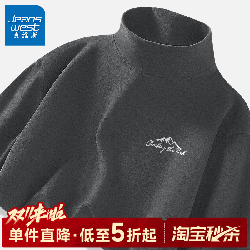 GV真维斯长袖打底衫男冬季加绒德高领秋衣男士抗菌加厚保暖内衣A