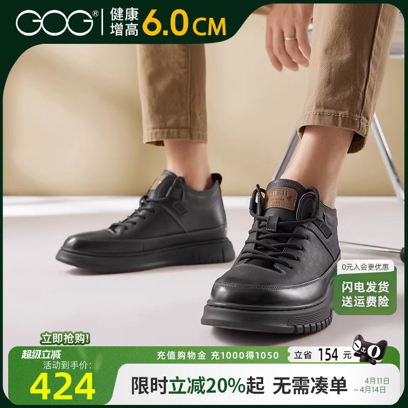 高哥内增高休闲皮鞋高帮男鞋春季新款男士时尚百搭英伦风增高板鞋