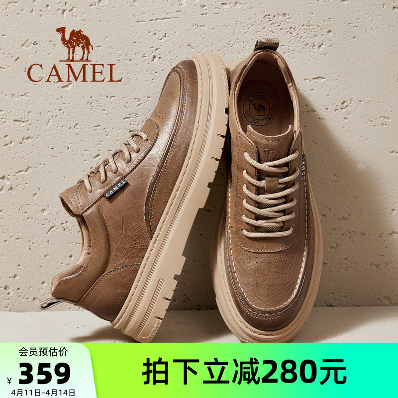 骆驼2026春季英伦风男鞋舒适真皮厚底经典休闲鞋工装皮鞋男士板鞋