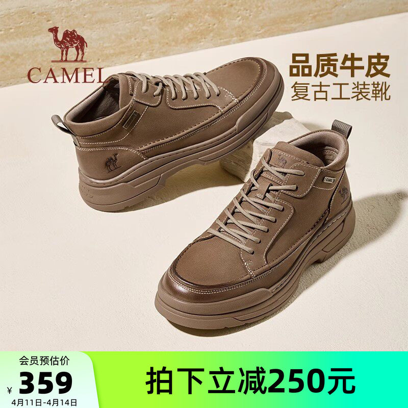 骆驼男鞋2026春季新款复古英伦风高帮板鞋牛皮时尚户外休闲工装靴