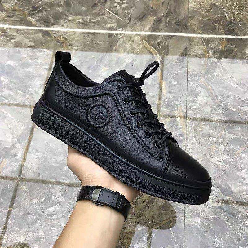 欧洲站男鞋秋季真皮休闲皮鞋男款百搭透气黑色板鞋英伦风时尚潮鞋