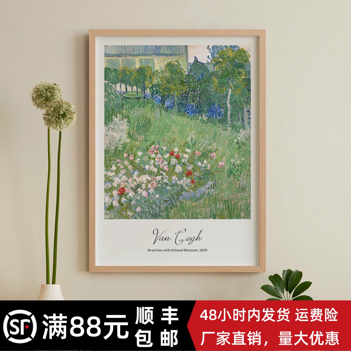 梵高莫奈背景墙装饰画玄关画框客厅卧室沙发抽象北欧艺术挂画油画
