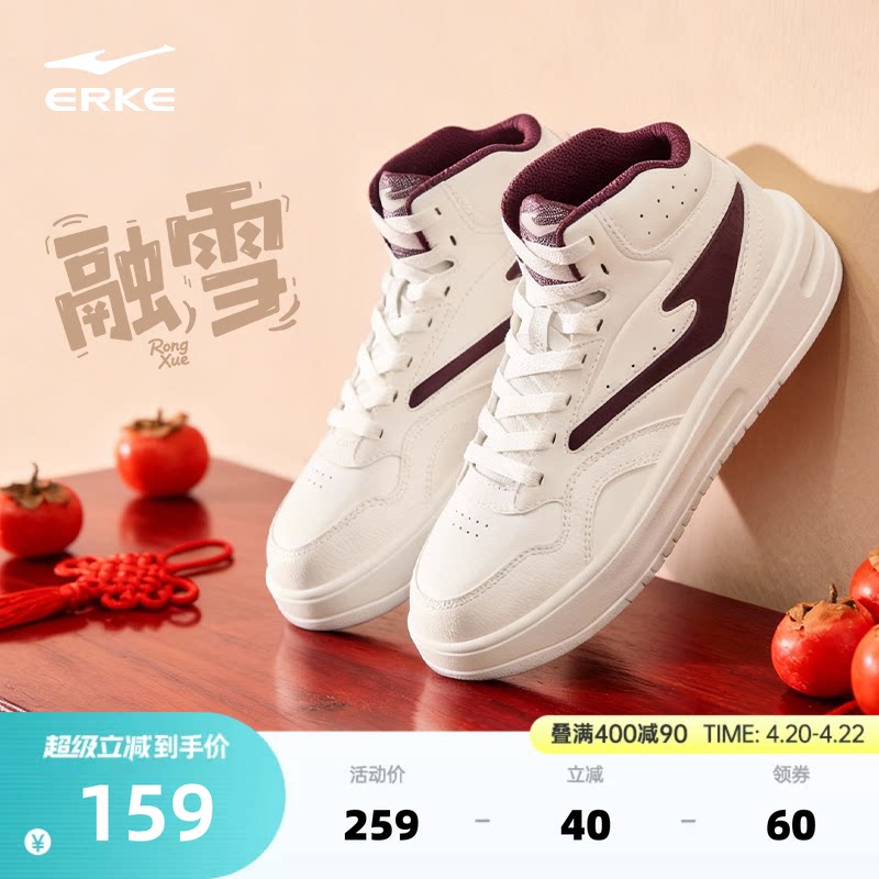 融雪鸿星尔克板鞋男鞋春季新款皮面厚底鞋子青少年休闲高帮运动鞋