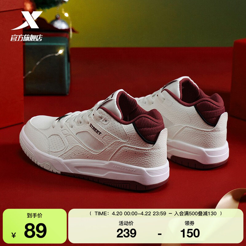 特步板鞋男鞋夏季新款休闲鞋情侣运动鞋女鞋白色百搭皮面小白鞋子