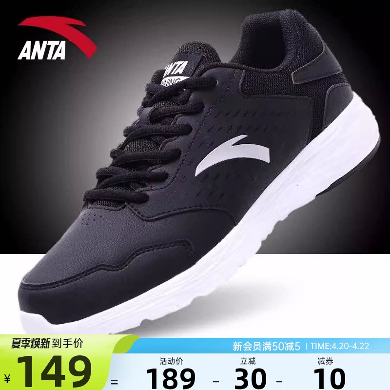 安踏男鞋运动鞋男款2026新款官方正品皮面防水男士鞋子黑色跑步鞋