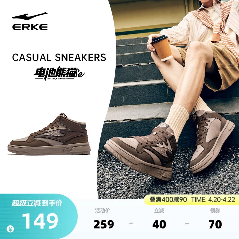 电池熊猫SE鸿星尔克板鞋高帮男鞋春季新款皮面鞋子学生休闲运动鞋