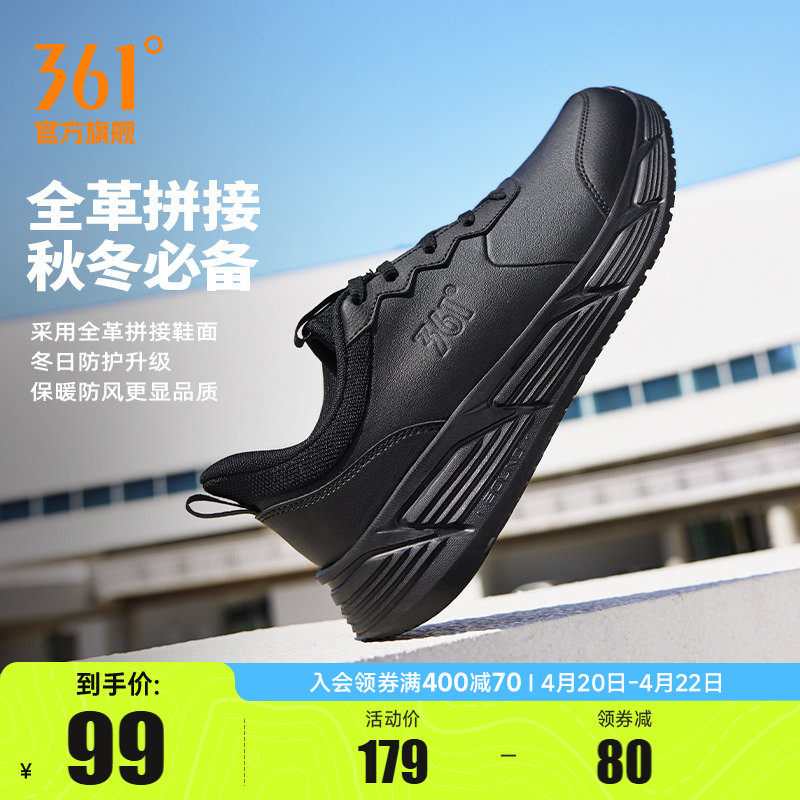 361男鞋运动鞋2026春季皮面防水鞋子黑色宽楦休闲跑鞋减震跑步鞋