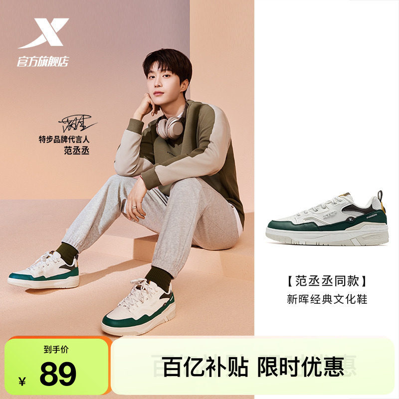 范丞丞同款丨特步新晖板鞋2026夏季男鞋休闲鞋潮流皮面低帮运动鞋