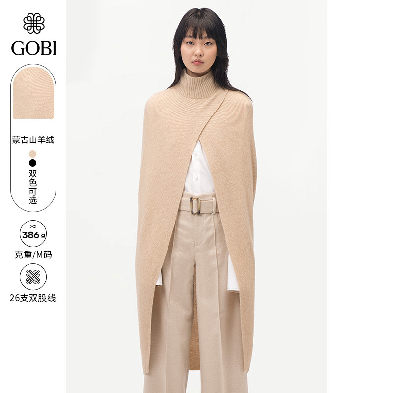 GOBI戈壁秋冬设计感高领交叉纯色中长款羊绒女士斗篷毛衣WK763
