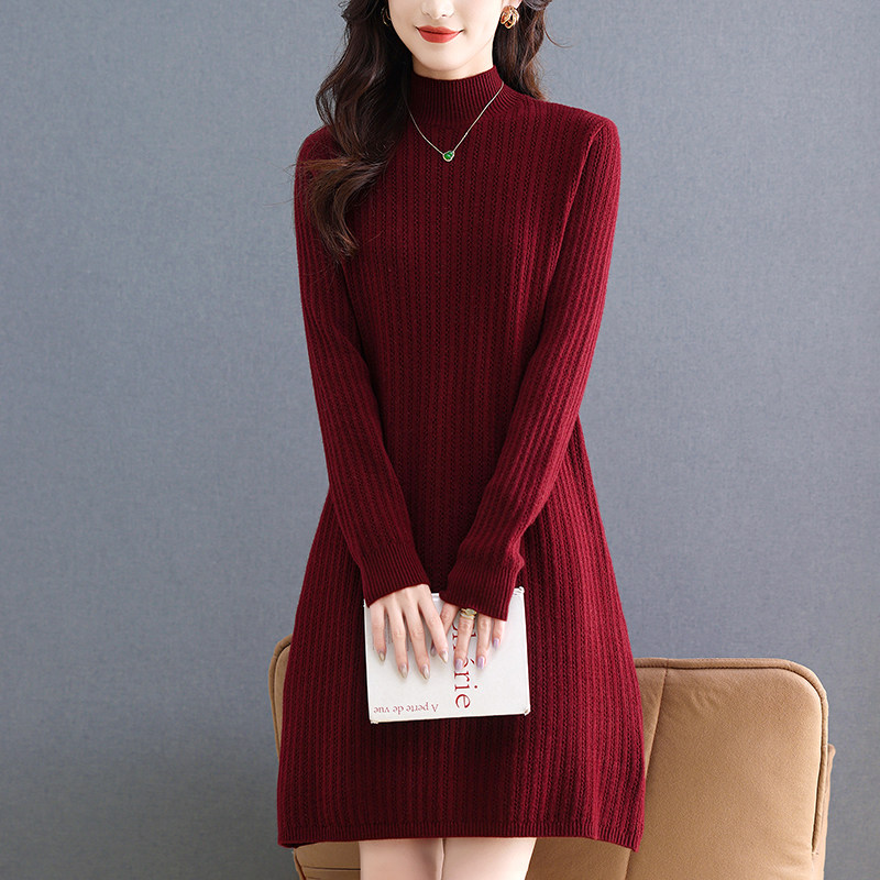 半高领毛衣裙女士中长款秋冬2025新款中年妈妈收腰内搭针织打底衫