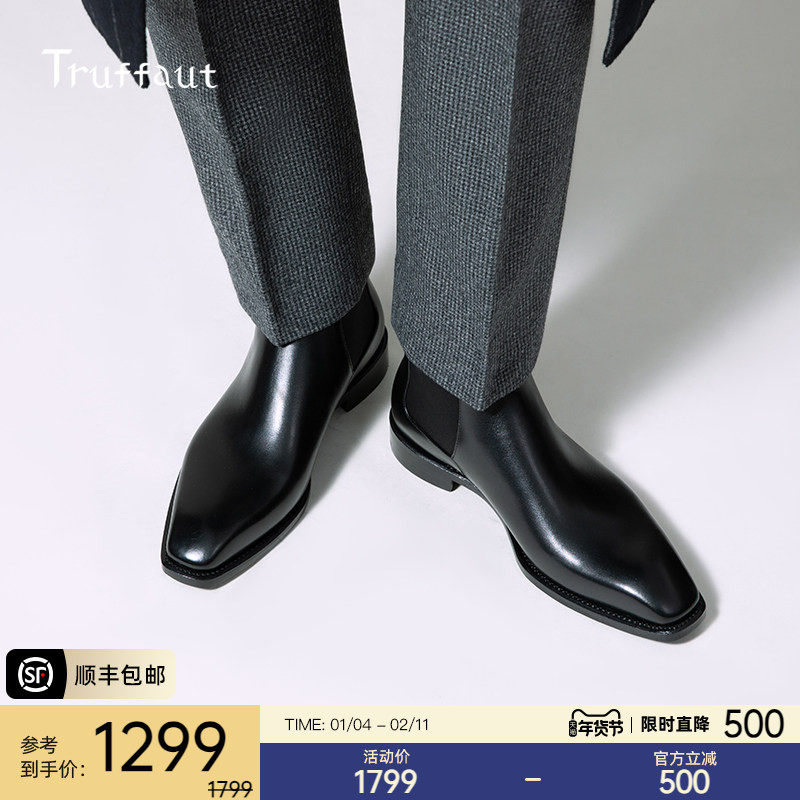 Truffaut固特异切尔西男靴英伦高帮皮鞋商务方头皮靴男士短靴冬季