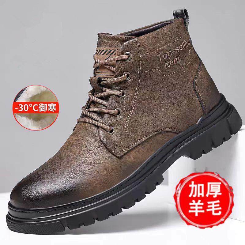 马丁靴男秋冬新款真皮男靴英伦风工装靴保暖加绒防滑休闲棉短靴子
