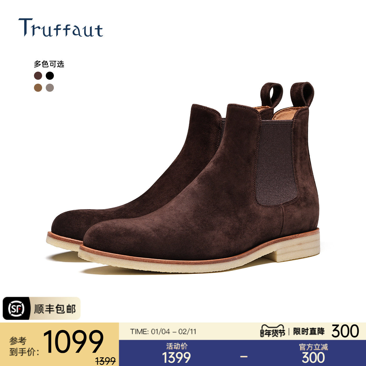 Truffaut男靴英伦休闲男士皮靴牛反绒切尔西靴高帮复古翻毛皮短靴
