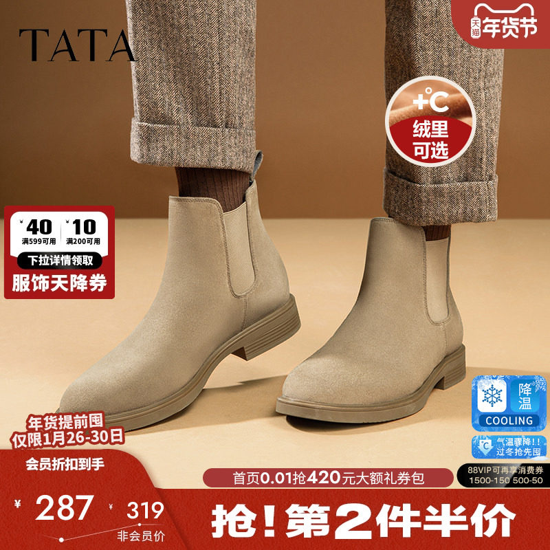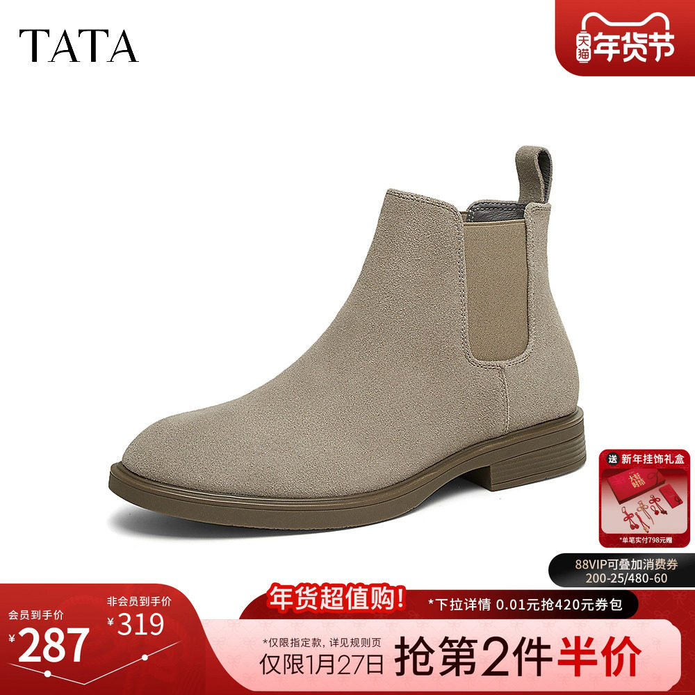 Tata他她英伦真皮切尔西靴男靴保暖烟筒靴短靴2024新款VVX02DD4