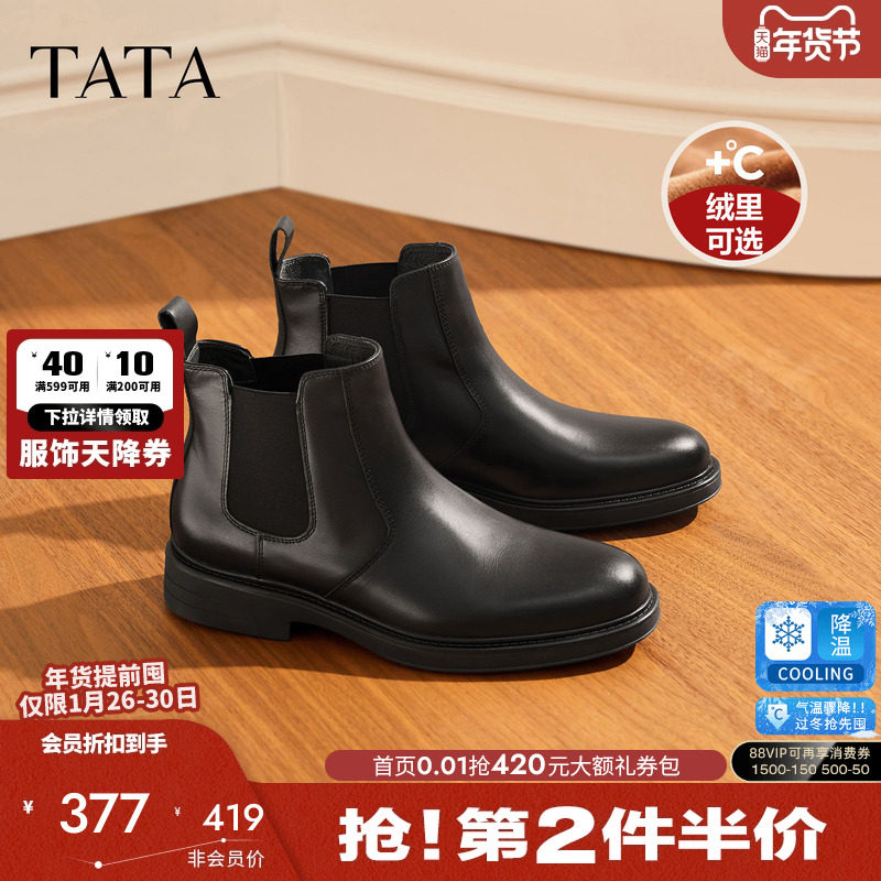 TATA他她切尔西靴男烟筒靴英伦牛皮加绒短靴秋冬新款男靴VVX02DD2