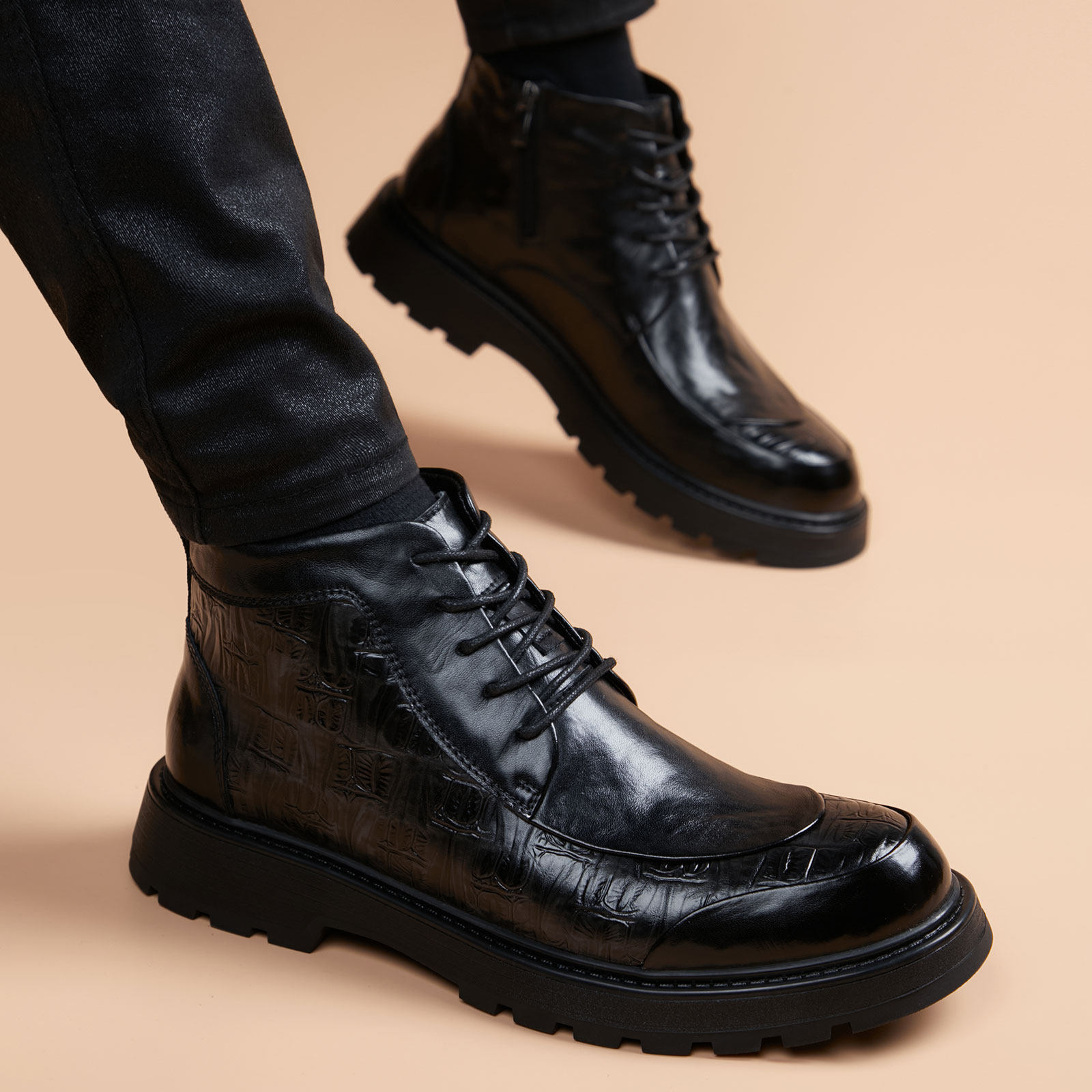 /保暖加绒/英伦三接头高帮真皮休闲男靴商务正装皮靴马丁靴男短靴