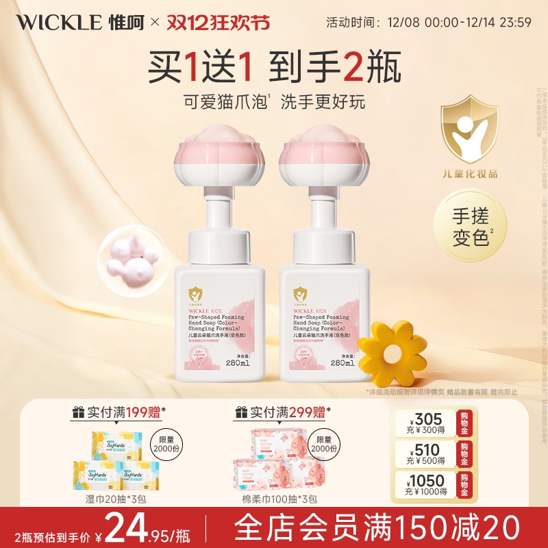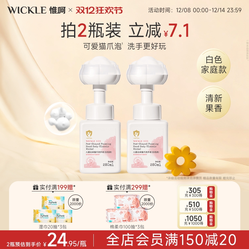 wickle宝宝专用泡泡洗手液儿童泡沫型猫爪洗手液温和儿童洗手液