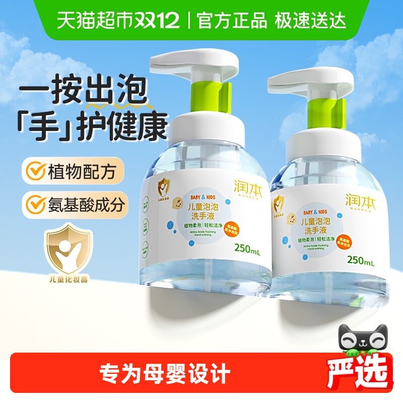润本儿童洗手液宝宝泡泡洗手液植物温和低泡婴儿洗手液250ml*2瓶