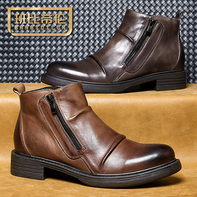 班比帝伦英伦复古牛皮靴男短靴高帮切尔西靴真皮马丁靴子男机车靴