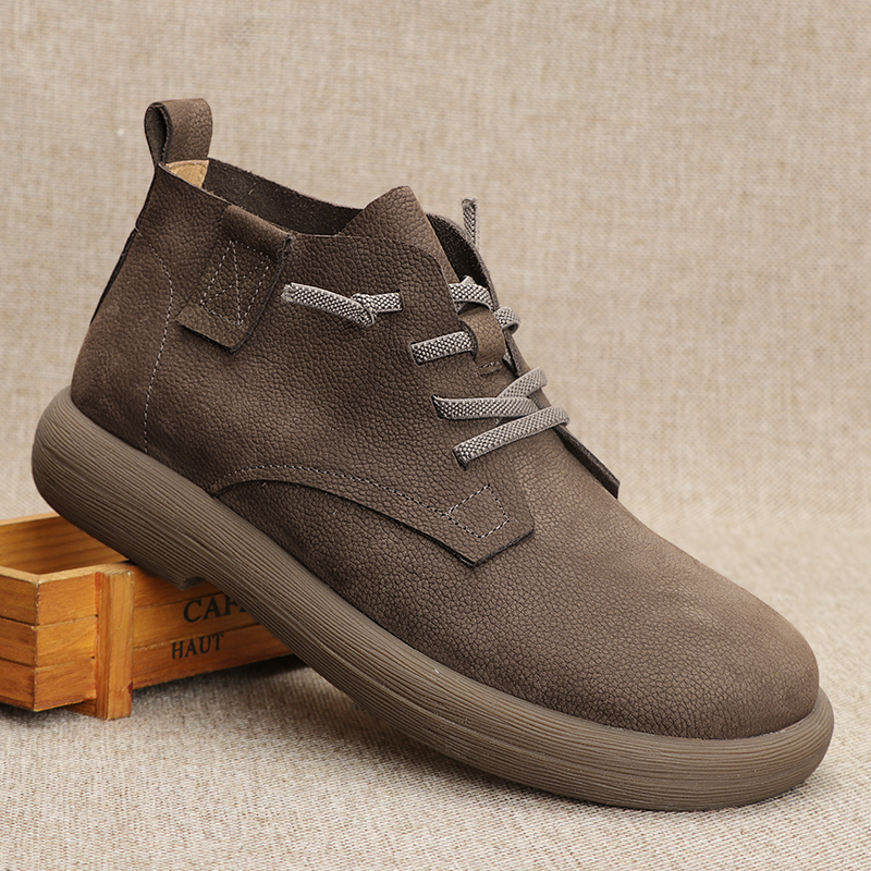 牛筋底高帮男鞋软面真皮舒适软底皮鞋男款复古休闲男士马丁靴子男