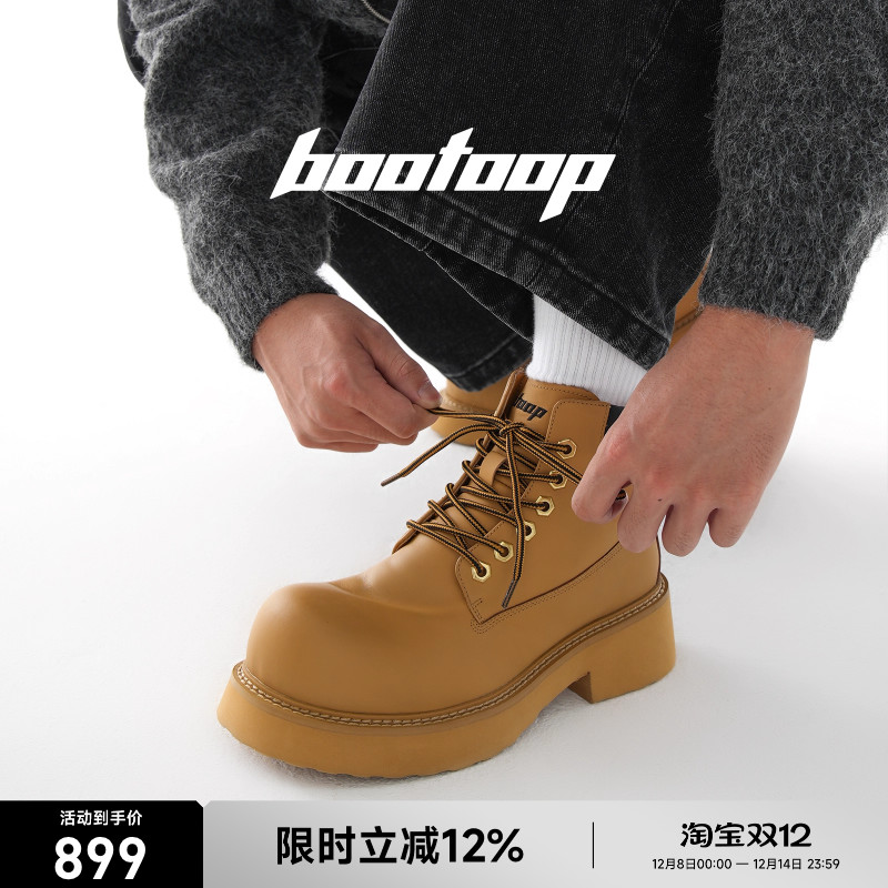 bootoop明星同款工装大头大黄靴马丁靴子男女同款沙漠靴高帮皮鞋