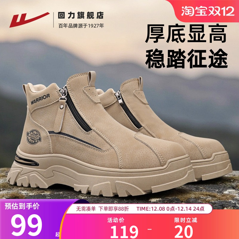 回力马丁靴子男鞋秋冬季高帮英伦风休闲复古拉链登山耐磨工装潮鞋