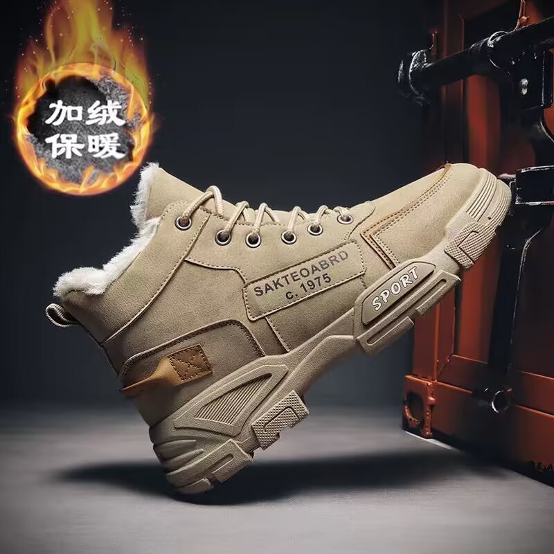 大嘴猴加绒马丁靴子男2025新款高帮工装沙漠靴冬季保暖休闲雪地靴