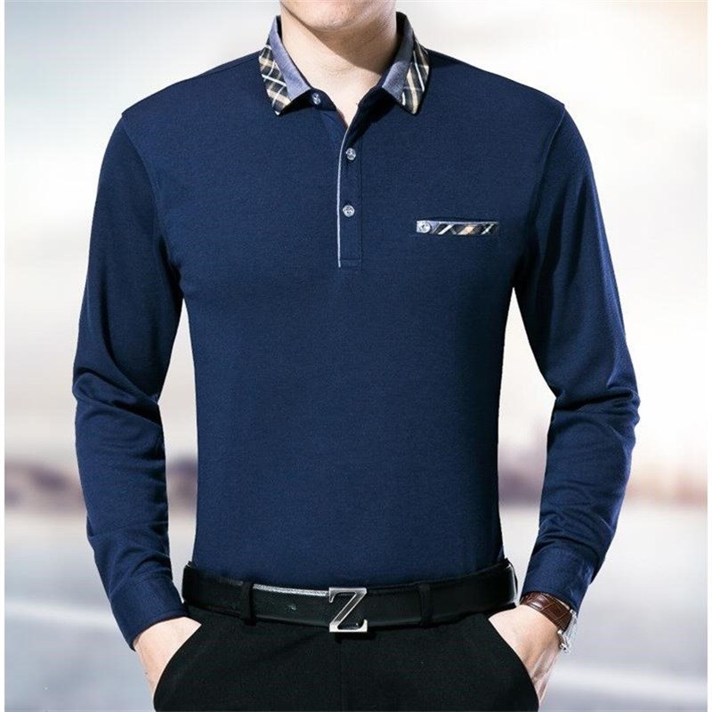 罗蒙POLO衫男长袖秋冬季新款商务休闲纯色t恤男士中年纯棉体恤衫