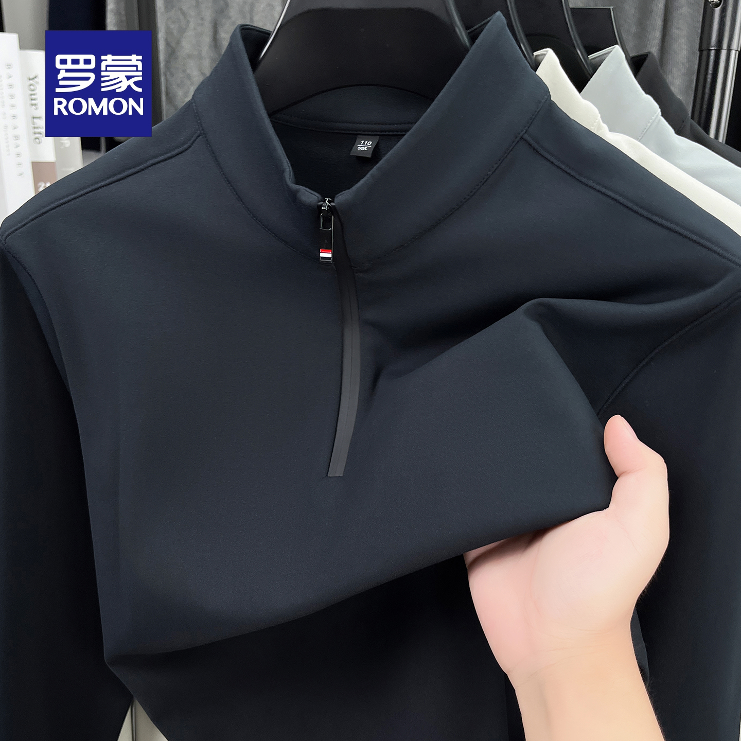 罗蒙半拉链长袖t恤男士舒适保暖内磨毛内搭打底衫中年男装上衣MF