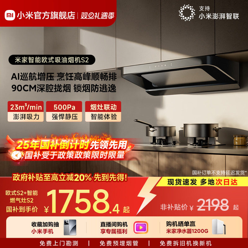 小米官方米家智能欧式S2厨房家用抽油烟机燃气灶套装正品大吸力