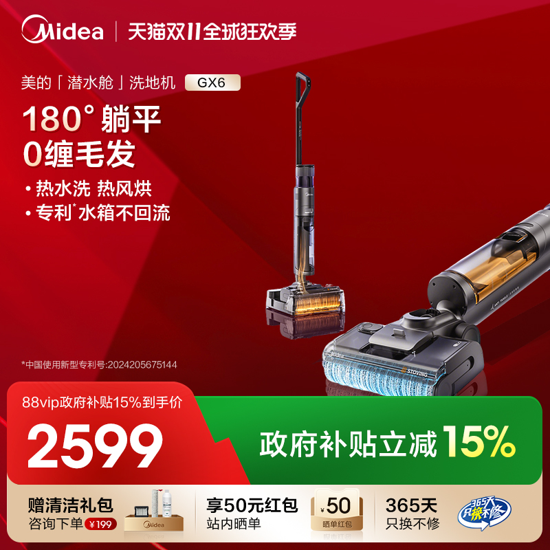 【品牌补贴】美的官方GX6洗地机躺平0缠0贴0污全自动智能吸拖一体
