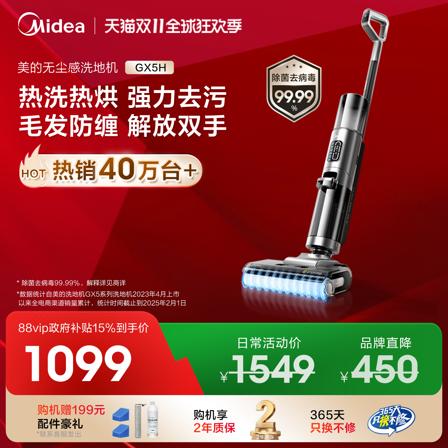 【政府补贴】美的洗地机GX5H系列智能全自动吸尘拖扫地一体机Pro